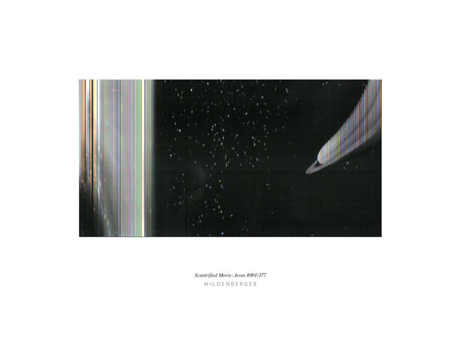 SCANTRIFIED MOVIE: JESUS shows the results that appear by sequential scanning the movie „Jesus“ from John Krish and Peter Sykes (1979), one of the most widely distributed religious films in history, with a mobile hand scanner.