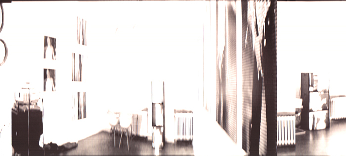 For the experimental setup, a scanner was laying on the screen of a 90° tilted monitor. With mouse-clicks the film and the scanner were started. The scanner was scanning the screen of the monitor while the video „Hamburg immer anders“ was playing. When the scanner moved back to start-position the film was stopped so that no picture got lost. This process was repeated until the whole video „Hamburg immer anders“ was scanned.